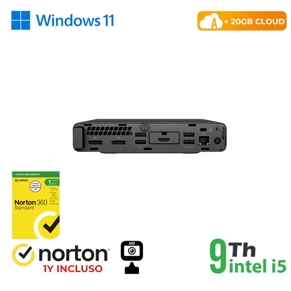 MINI PC HP 600-800 G5 INTEL i5-9GEN 8GB RAM 256GB SSD WIN 11 PRO UPG + NORTON ANTIVIRUS + 20GB CLOUD + WEBCAM cod.RN65522384