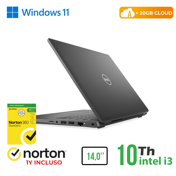NOTEBOOK DELL 3410 14″ INTEL i3-10GEN 8GB RAM 240GB SSD WINDOWS 11 PRO + NORTON ANTIVIRUS + 20GB CLOUD cod.RN42422311