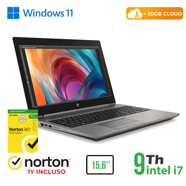 WORKSTATION MOBILE HP ZBOOK G6 15,6″ INTEL i7-9GEN 16GB RAM 1TB SSD NVIDIA QUADRO T2000 4GB WINDOWS 11 PRO + NORTON ANTIVIRUS + 20GB CLOUD cod.RN62635311